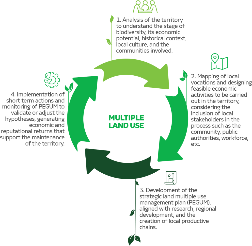 We analyze your territory seeking to implement multiple land use, that is, we develop analyses aimed at different businesses on the same hectare of forest, respecting the vocations of the territory and taking advantage of local opportunities, showing the value of the standing forest.